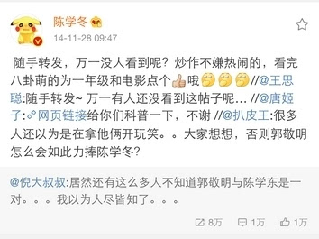 现在又说只是朋友(也有网友表示,冬冬的意思是小四和汪铎只是朋友)!额,陈学冬能有郭敬明这样让他当主角、为他写歌、帮他喷网友……又力捧他的好朋友,真是幸运啊! 2/2 首页 上一页 1 2 |