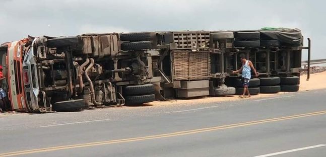 还有不少货车因轮胎被打,导致车辆侧翻在路边。
